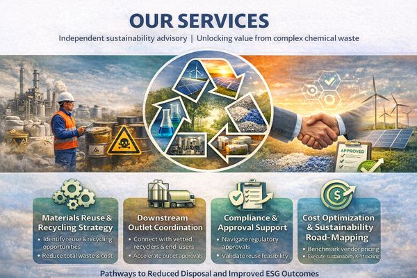 We evaluate material streams, design reuse-first pathways, support technical and regulatory approvals, and coordinate qualified downstream partners — reducing disposal dependence, lowering long-term cost, and improving sustainability performance without disrupting plant operations.